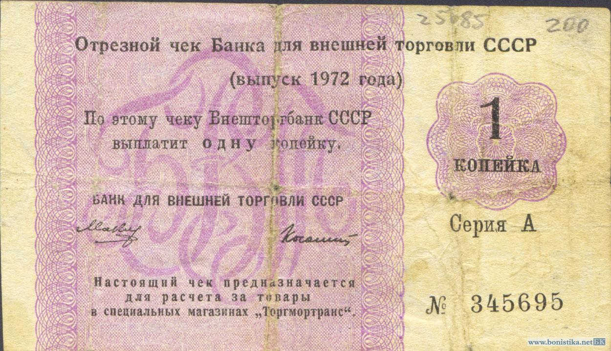 СССР, Заменители валюты, 1972, ТоргМорТранс, 1 копейка, серия А, без якоря
