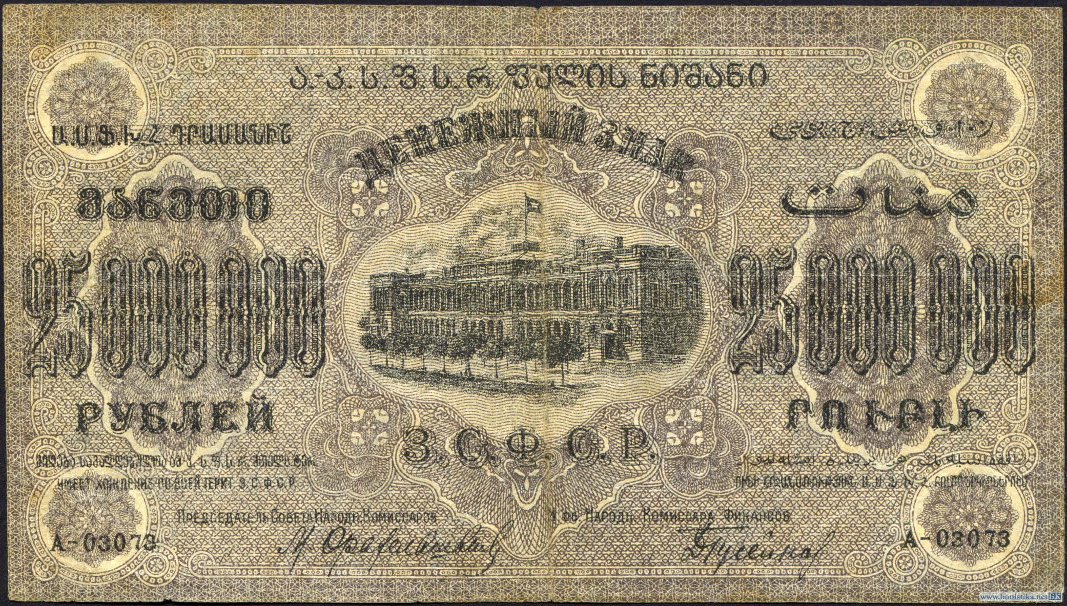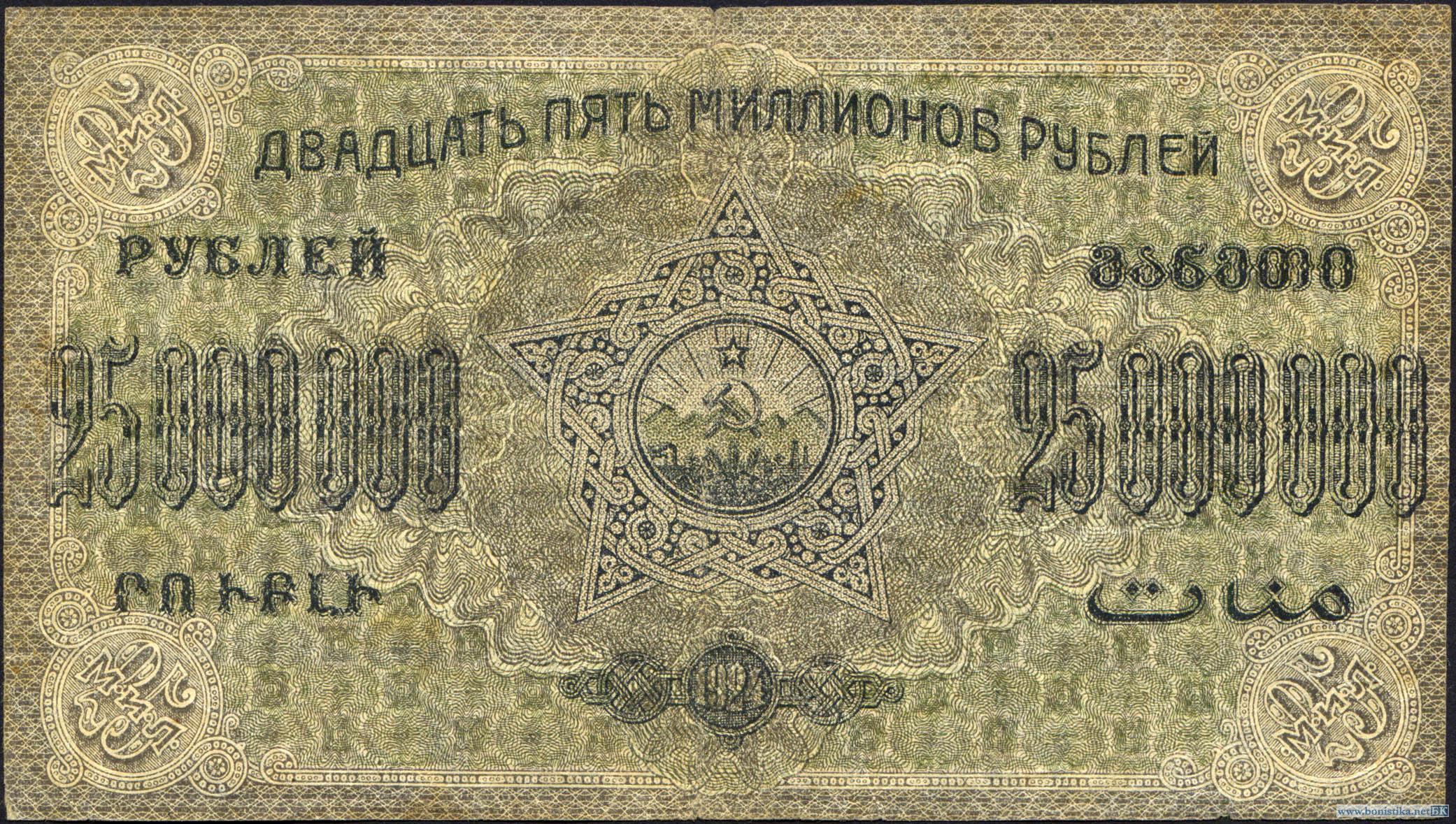 Грузия, 1924, ЗСФСР, 25 миллионов рублей, с ВЗ