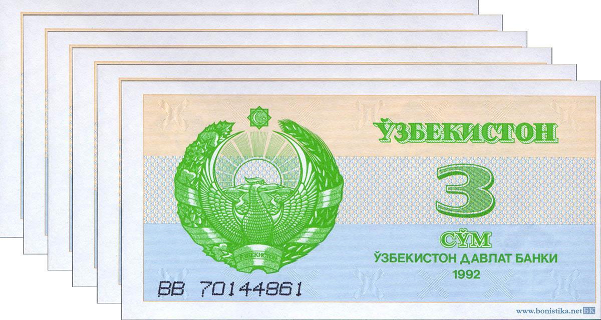 Узбекистан, 1992, 3 сума, 6 штук