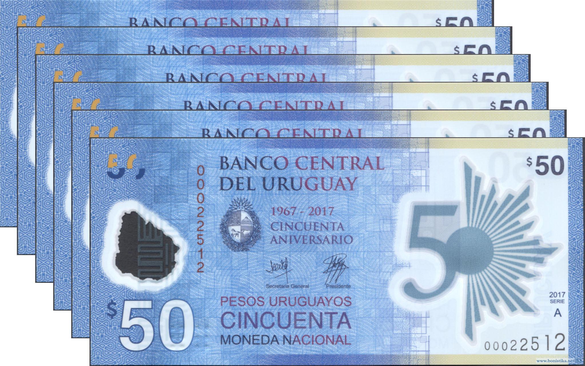 Уругвай, 2017, 50 песо, 6 штук