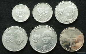 Индонезия, 2016, Набор 1994-2016, 25, 50, 100, 200, 500 и 1000 рупий