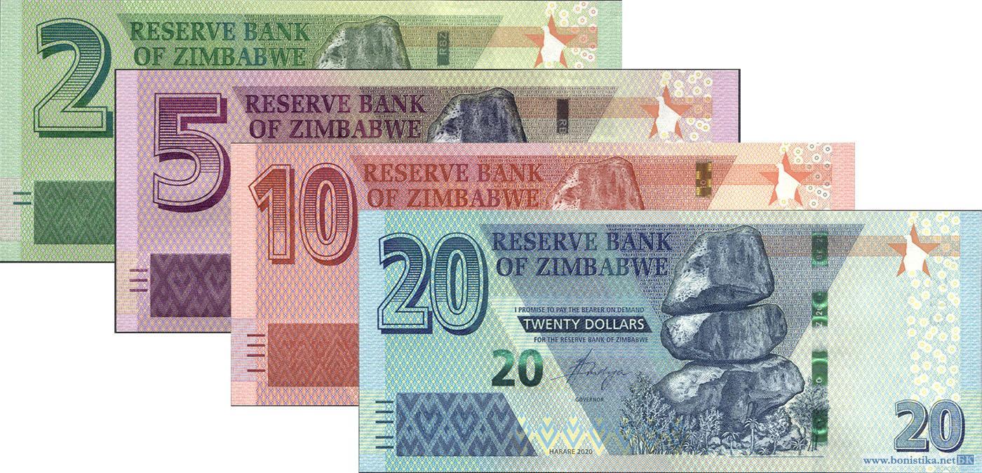 Зимбабве, 2019, Набор 2, 5, 10, 20 долларов 2019-2020