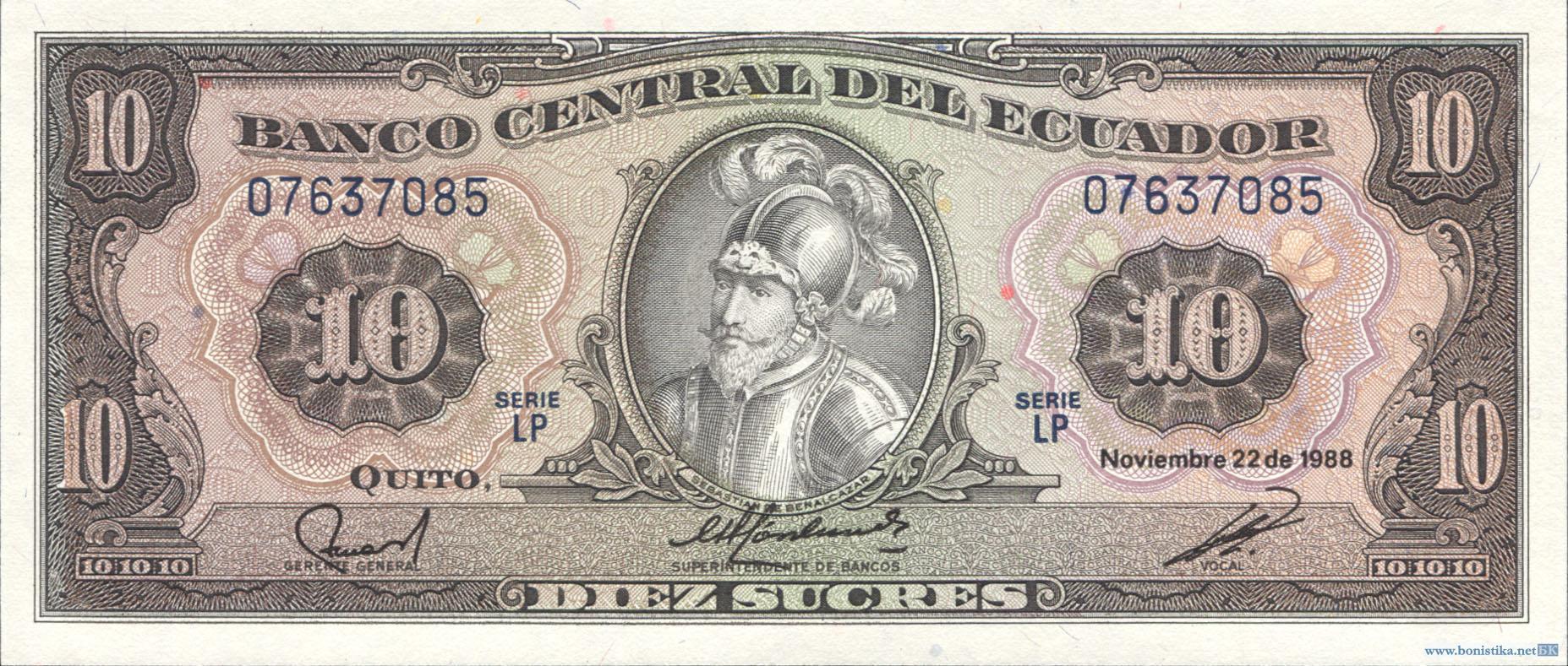 Эквадор, 1988, 10 сукрэ, серия LP