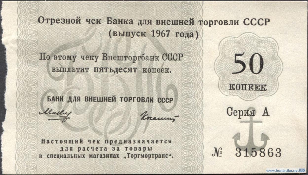 СССР, Заменители валюты, 1967, ТоргМорТранс, 50 копеек, с якорем