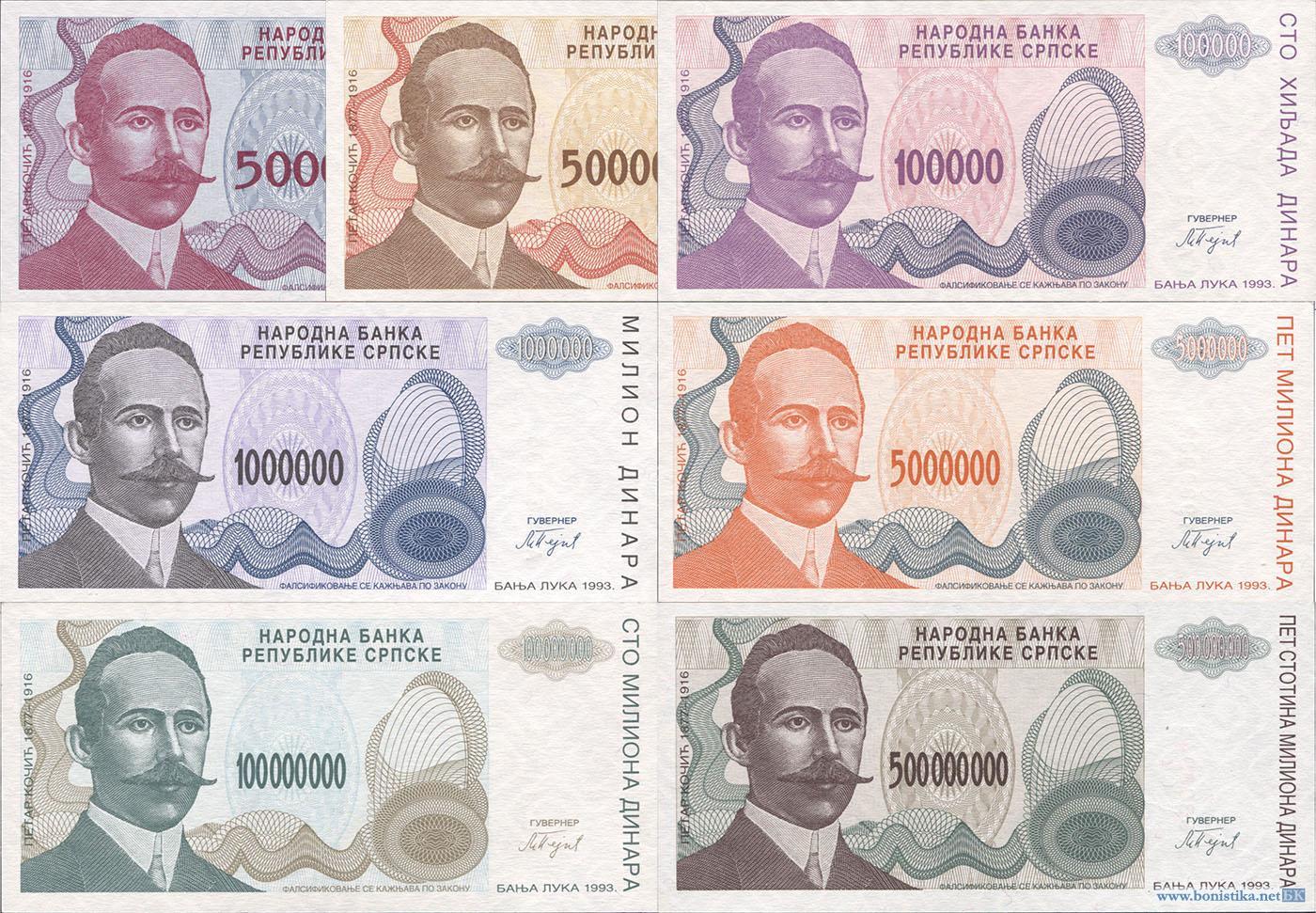 Босния и Герцеговина, 1993, Набор 5000, 50000, 100000, 1000000, 5000000, 100000000, 500000000 динаров