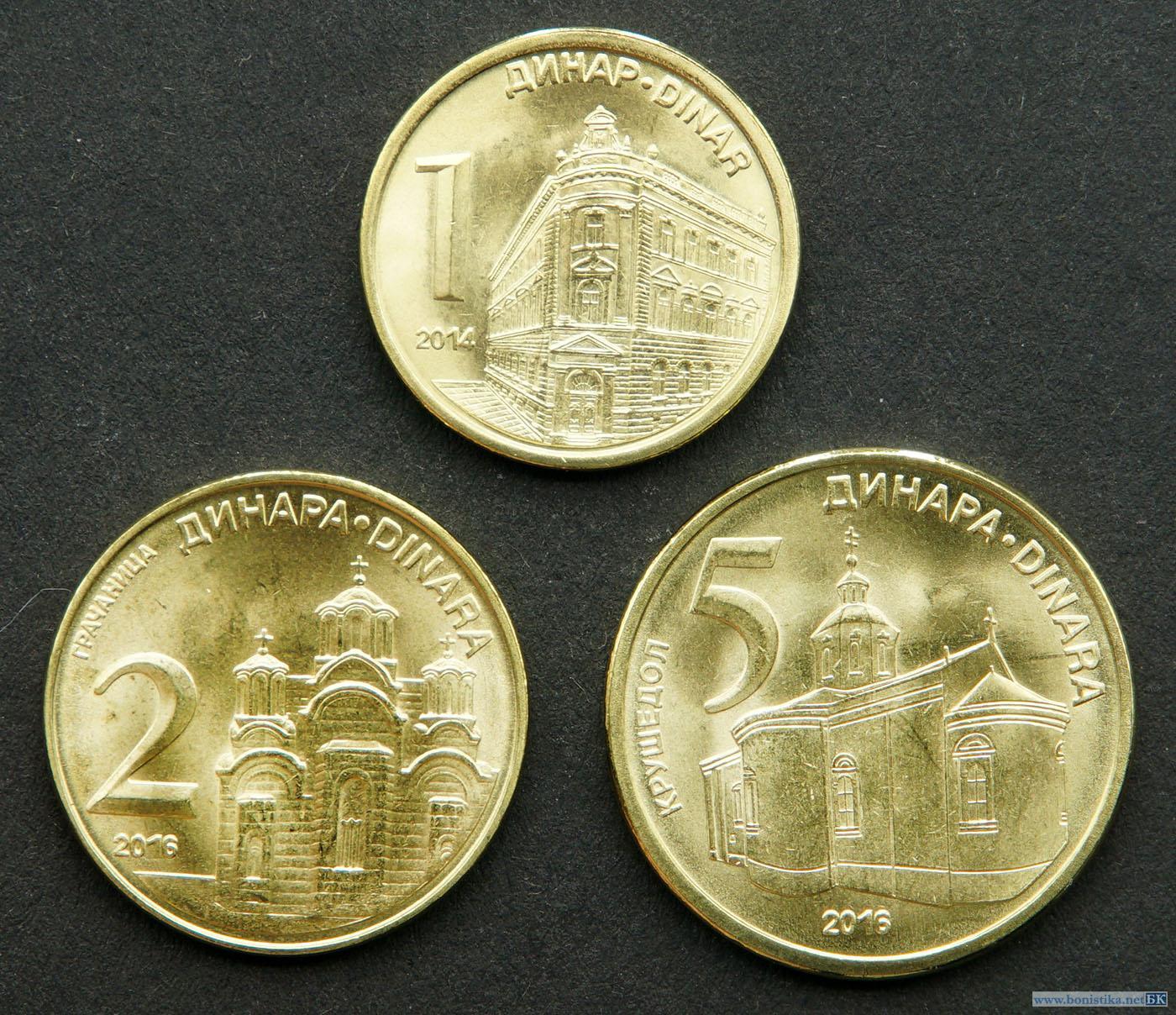 Сербия, 2016, Набор 1, 2, 5 динаров 2013-2014 гг.