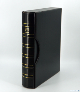 Альбом виготовлений з високоякісної штучної шкіри. Вмістимість до 50 листів для банкнот або монет, також для вертикального і торцевого зберігання. Аркуші купуються окремо. Сумісний із аркушами інших виробників. В альбомі є асортимент кольорів:чорний, синій, зелений,бордовий.