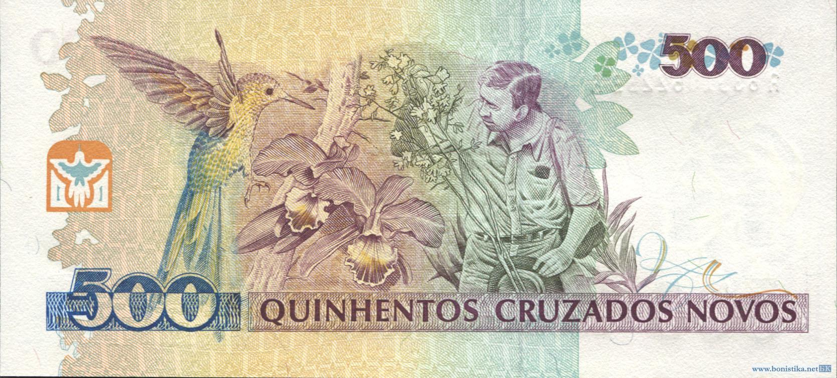 Бразилия, 1990, 500 крузейро надпечатка на 500 крузадо