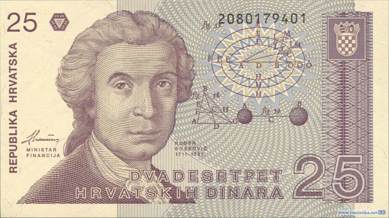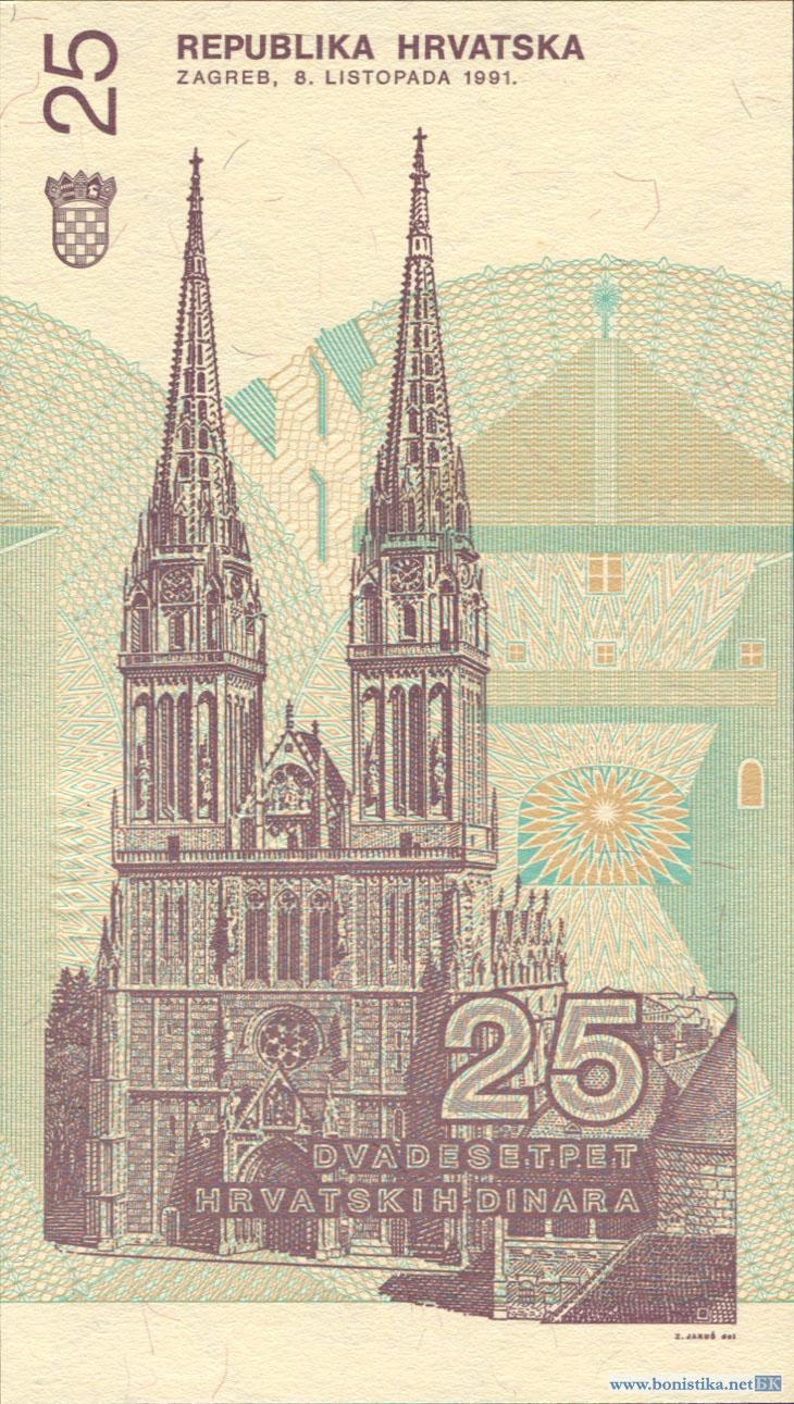 Хорватия, 1991, 25 динаров, инверсный ВЗ