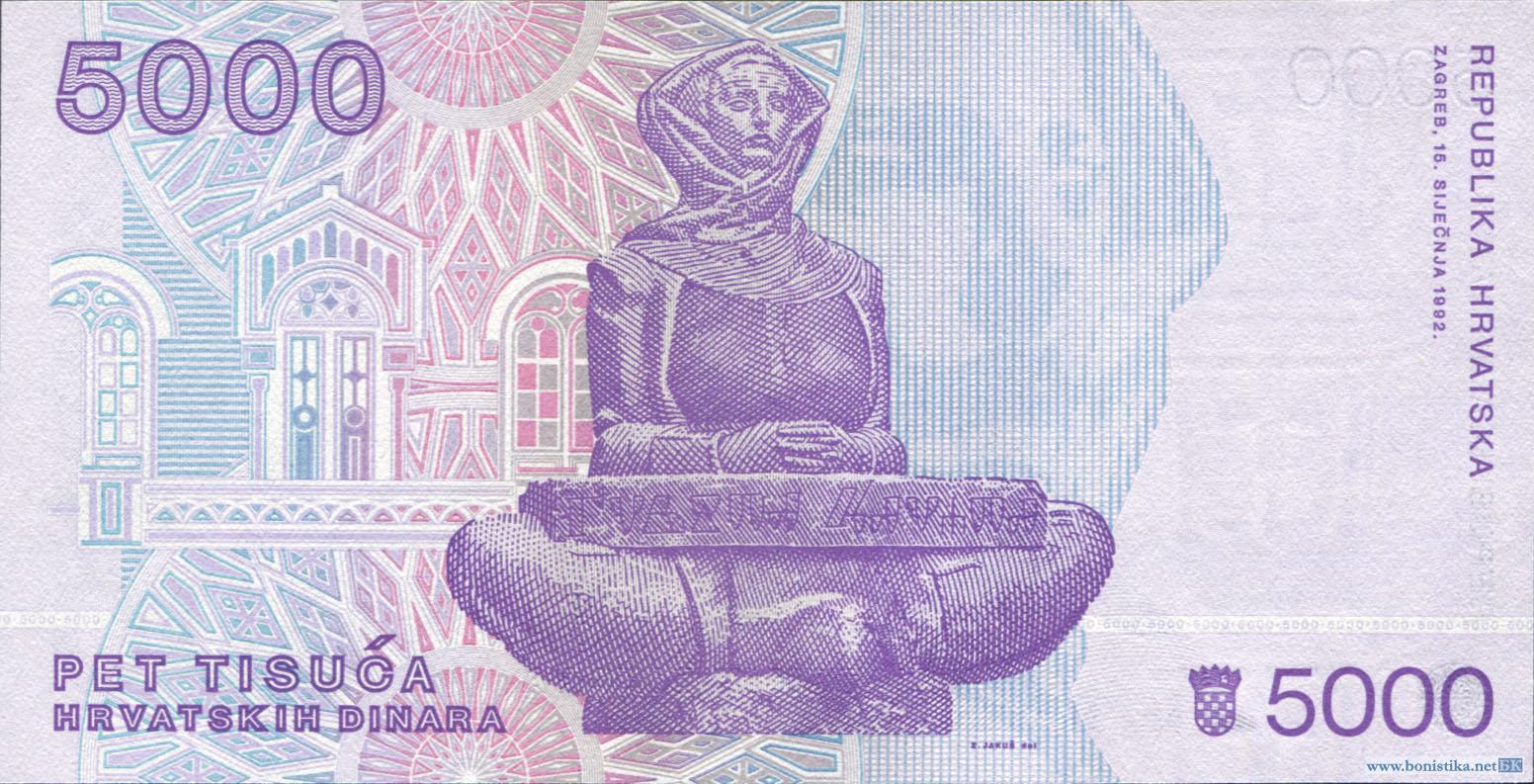 Хорватия, 1992, 5000 динаров
