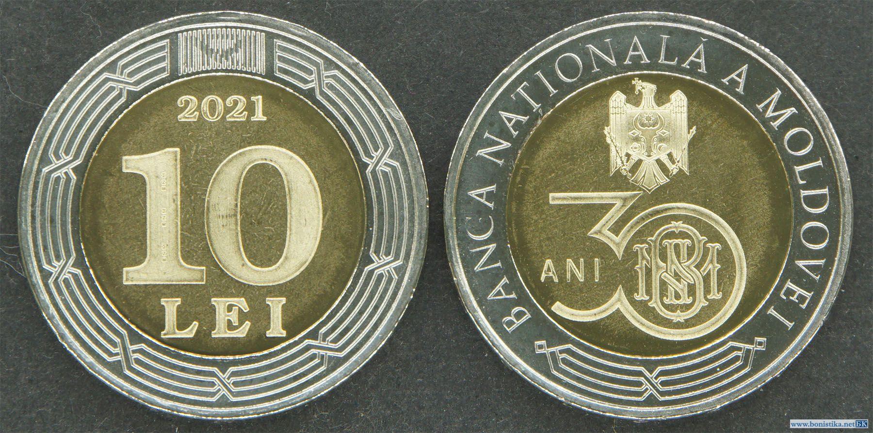 Молдова, 2021, 10 леев '30 лет Национальному Банку Молдовы'