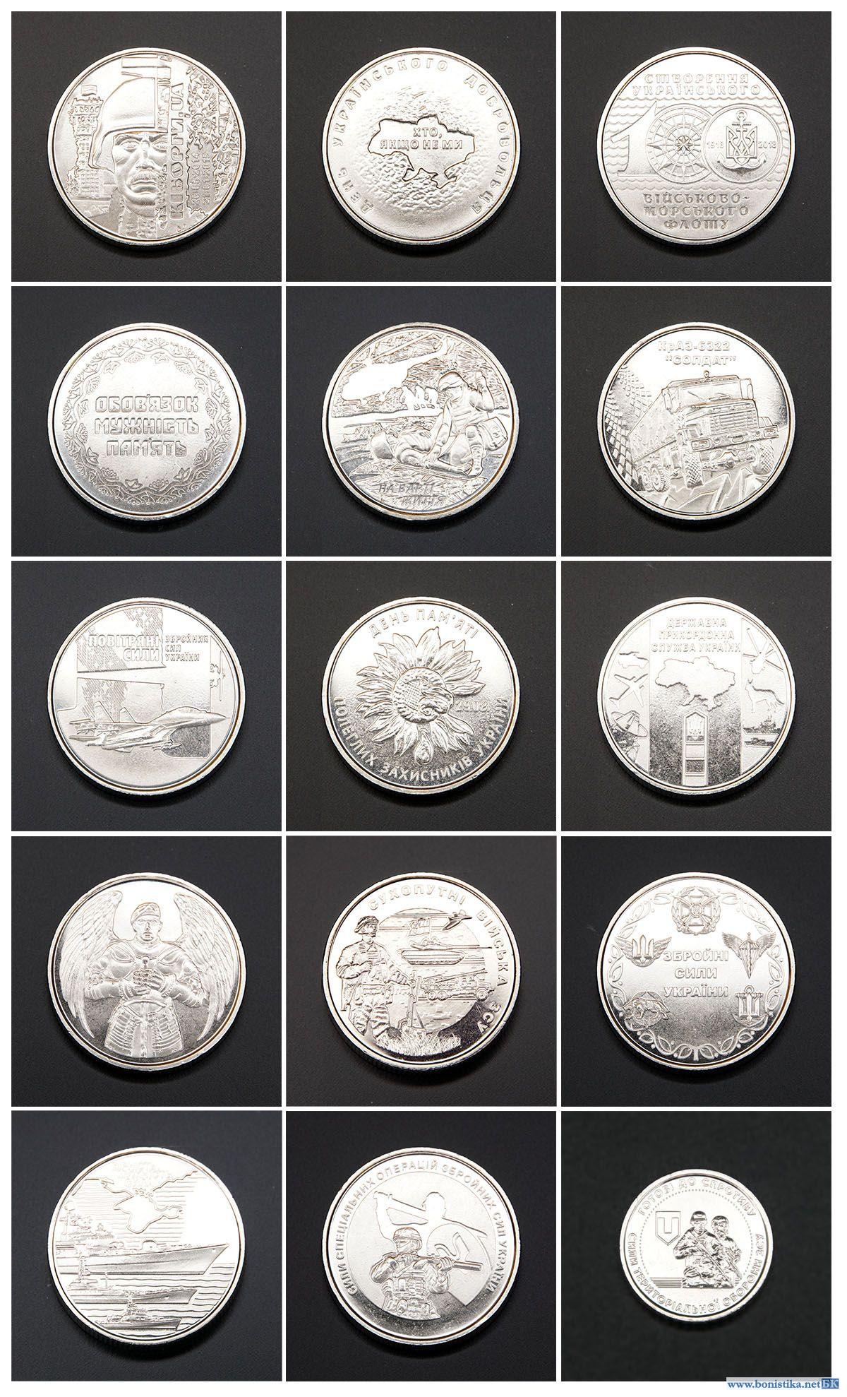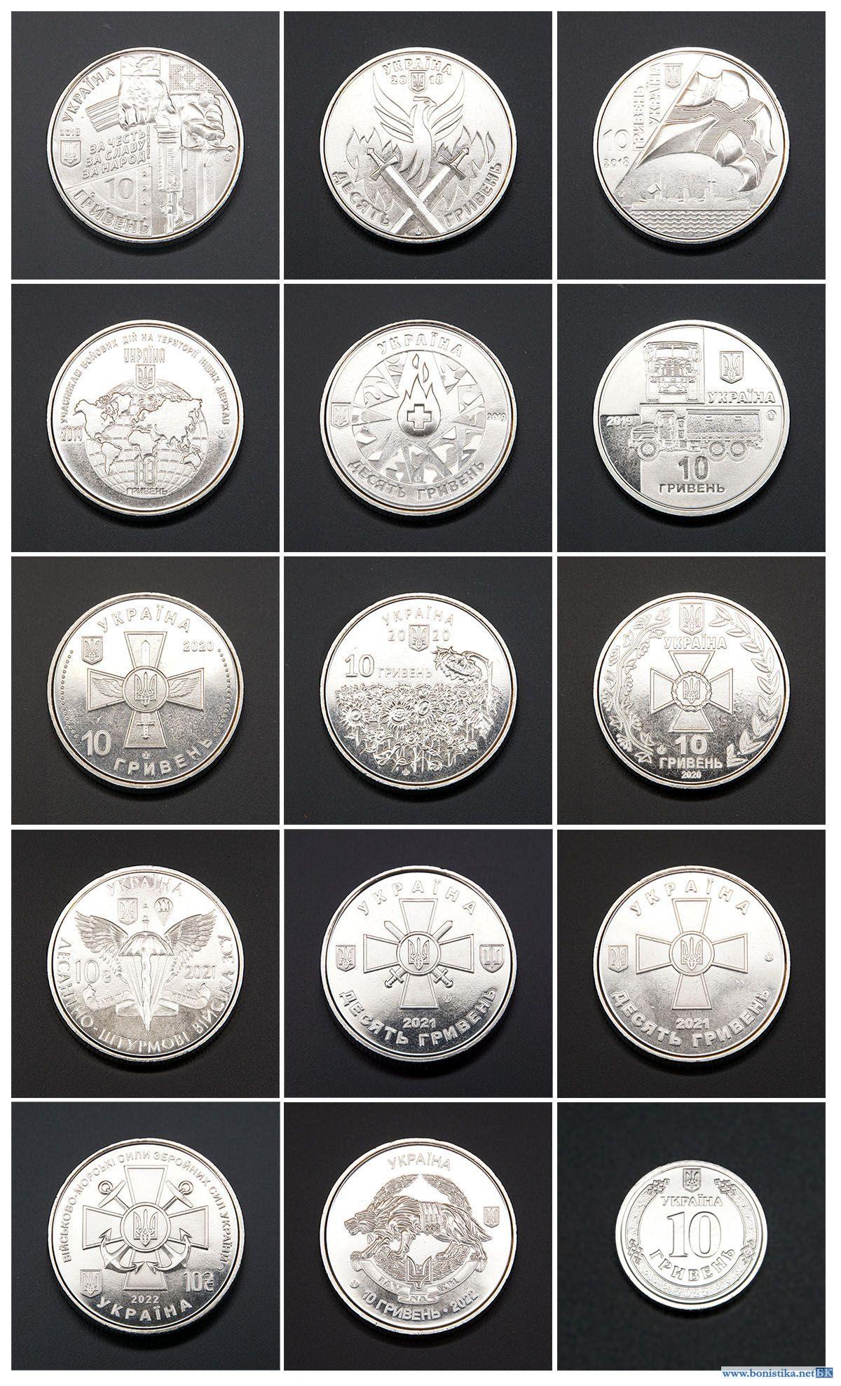 Украина, 2022, 10 гривен 'Вооруженные силы Украины', набор из 15 монет
