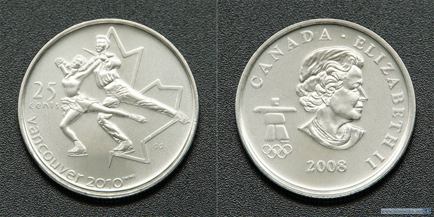 Канада, 2008, 25 центов, 'Фигурное катание', Ванкувер 2010, зимняя Олимпиада