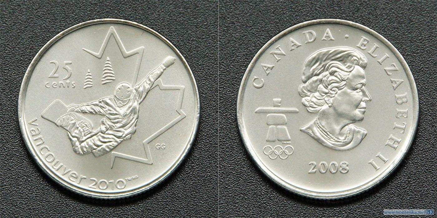 Канада, 2008, 25 центов, 'Сноуборд', Ванкувер 2010, зимняя Олимпиада