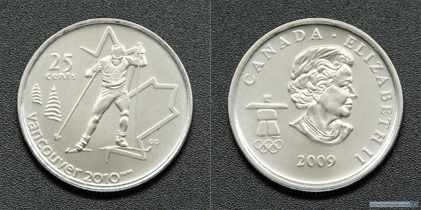 Канада, 2009, 25 центов, 'Лыжи', Ванкувер 2010, зимняя Олимпиада
