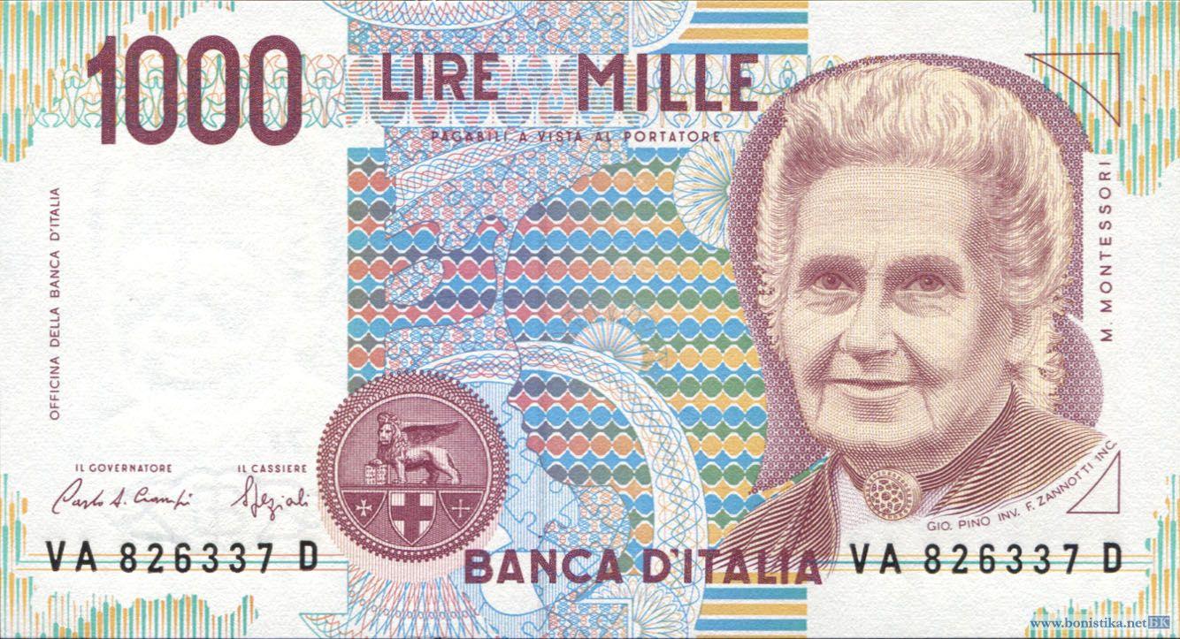 Италия, 1990, 1000 лир, Мария Монтессори