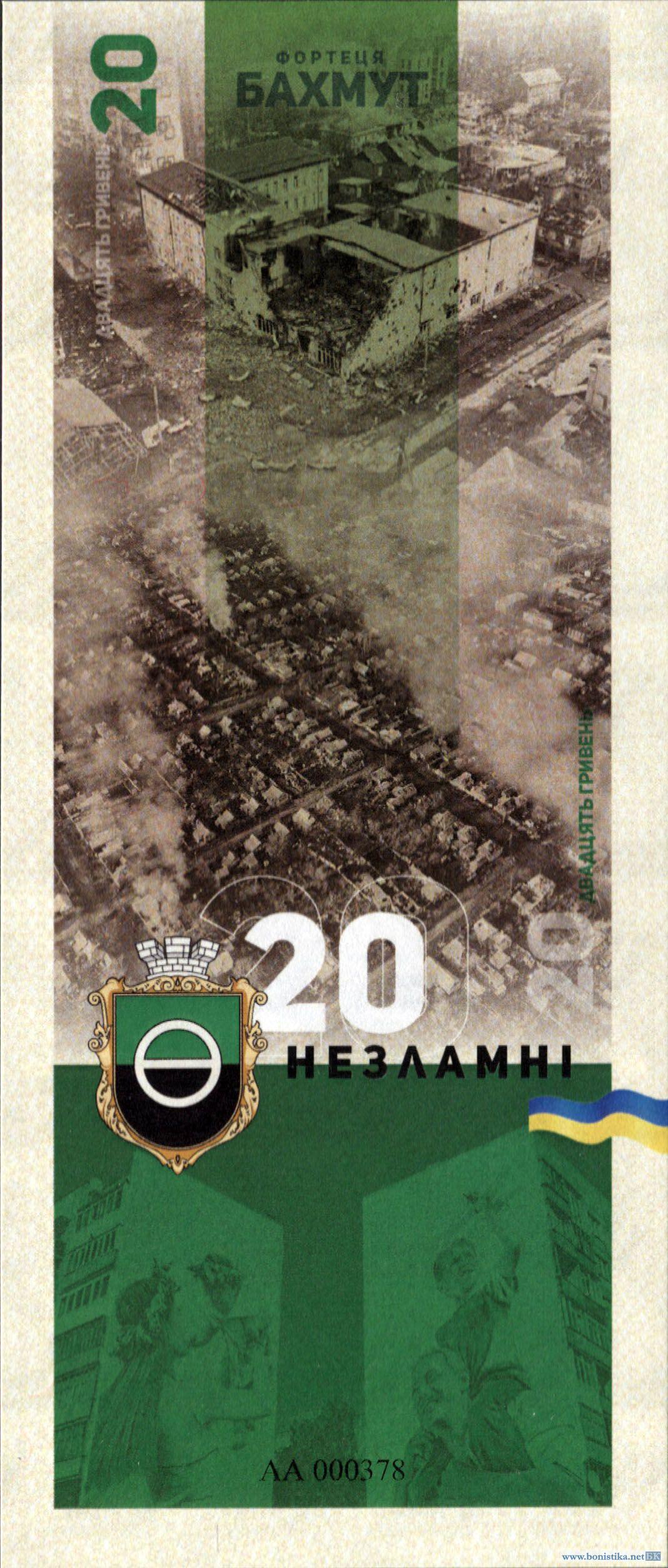 Украина, 2023, 20 гривен, сувенирная банкнота 'Бахмут', в буклете