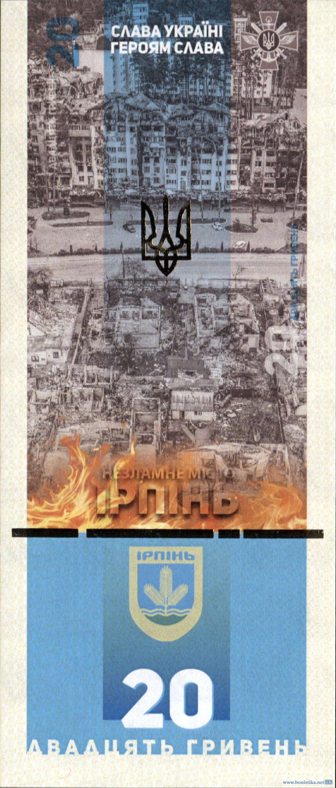 Украина, 2023, 20 гривен, сувенирная банкнота 'Ірпінь', в буклете