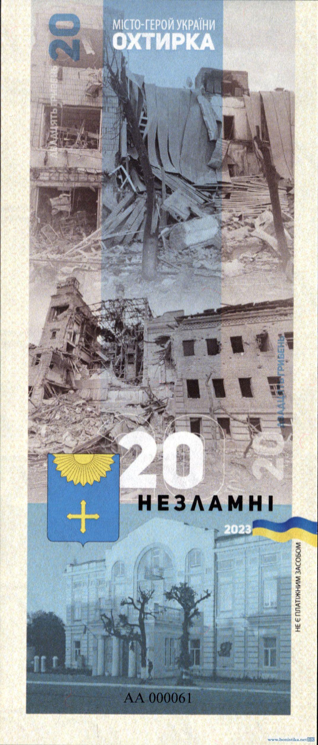 Украина, 2023, 20 гривен, сувенирная банкнота 'Охтирка', в буклете
