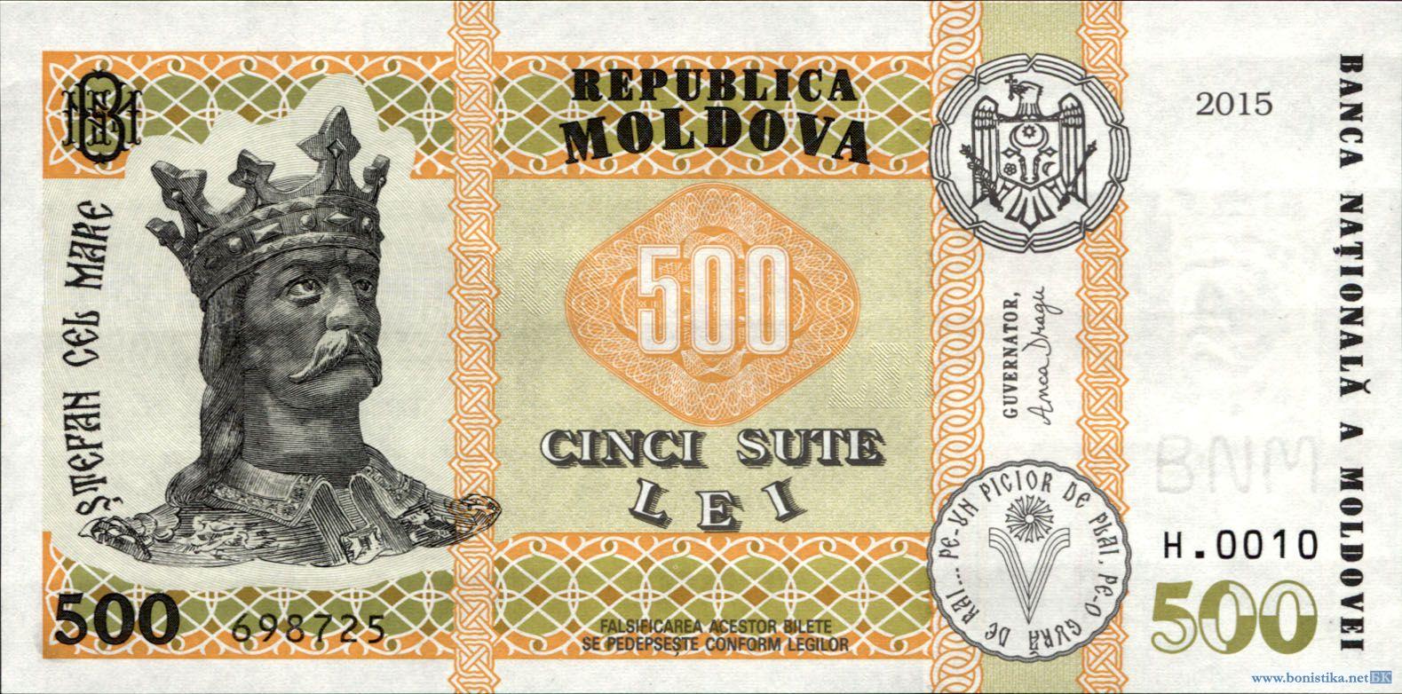 Молдова, 2015, 500 лей, 2024, подпись Анка Драгу