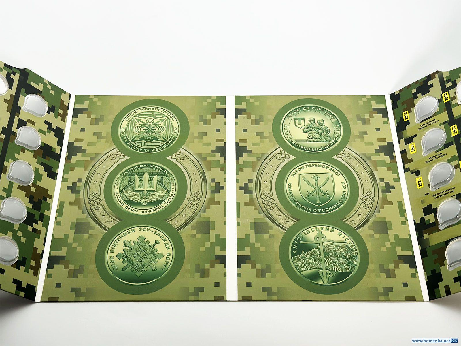 Украина, 2024, Альбом для коллекции монет 10 гривен ЗСУ 2022-2024, с монетами