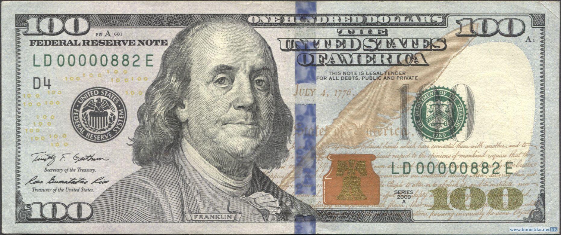 США, 2009, 100 долларов, номер 00000882