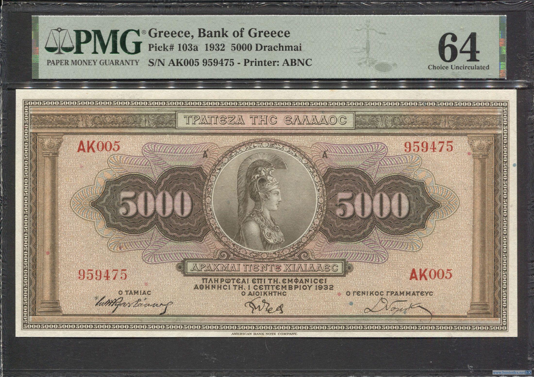 Греция, 1932, 5000 драхм, PMG64