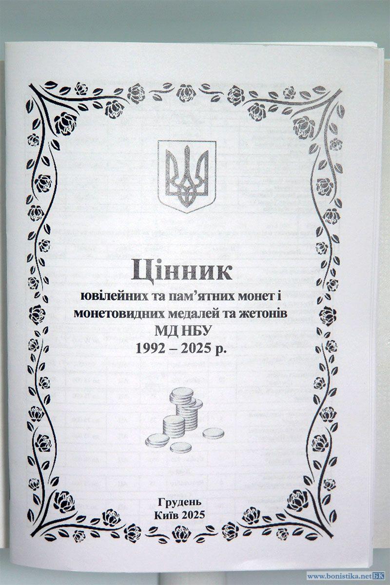 Украина, 2025, Цінник ювілейних та пам'ятних монет і монетовидних медалей та жетонів МД НБУ, грудень 2025