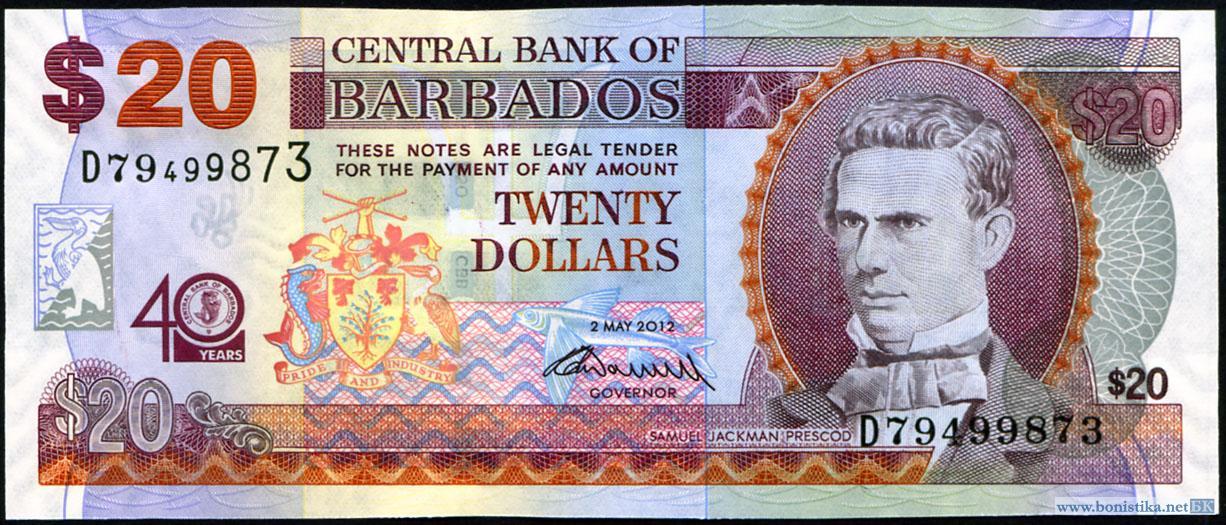 Барбадос, 2012, 20 долларов, 40 лет Центральному банку Барбадоса