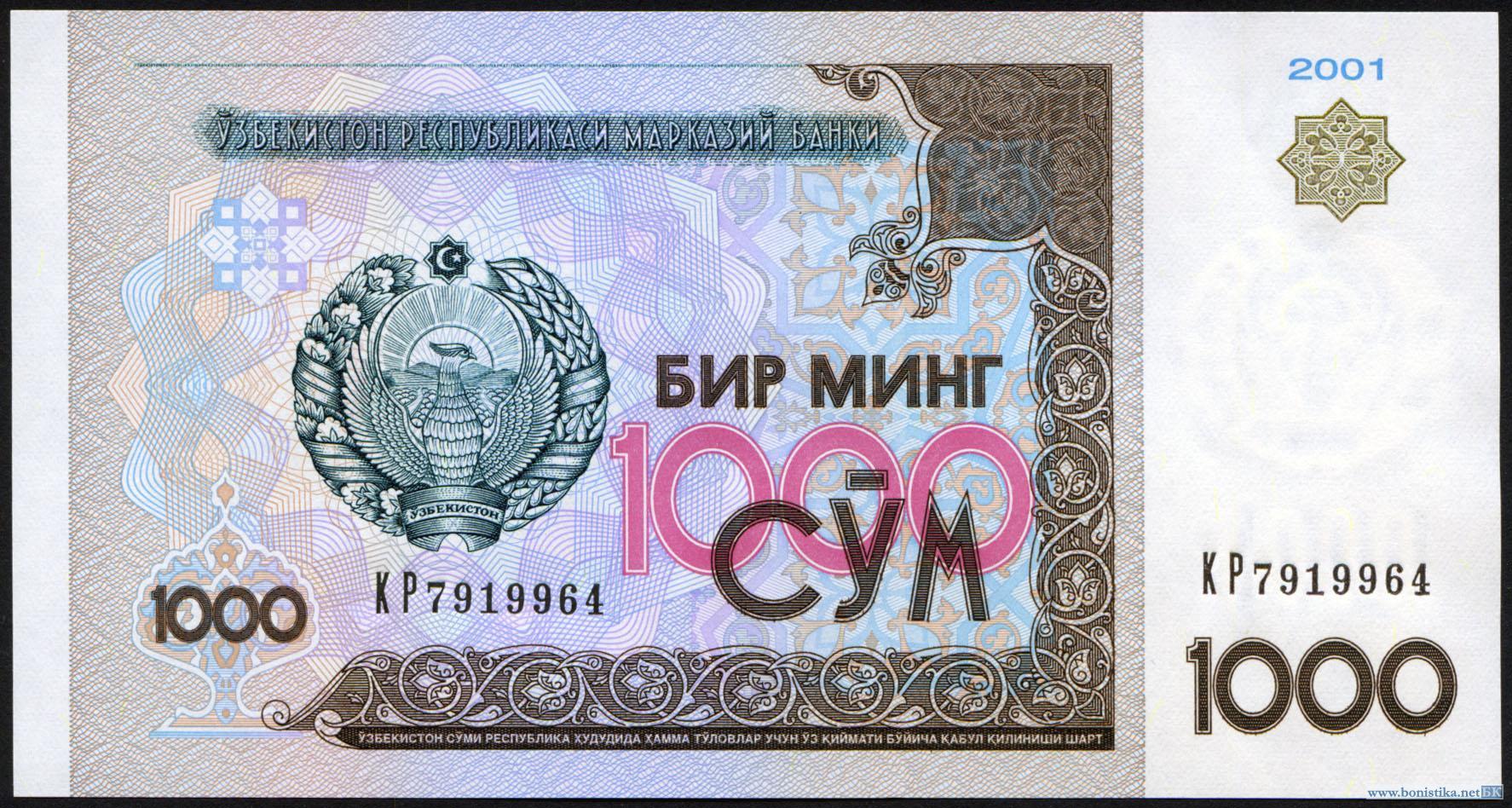 Узбекистан, 2001, 1000 сумов