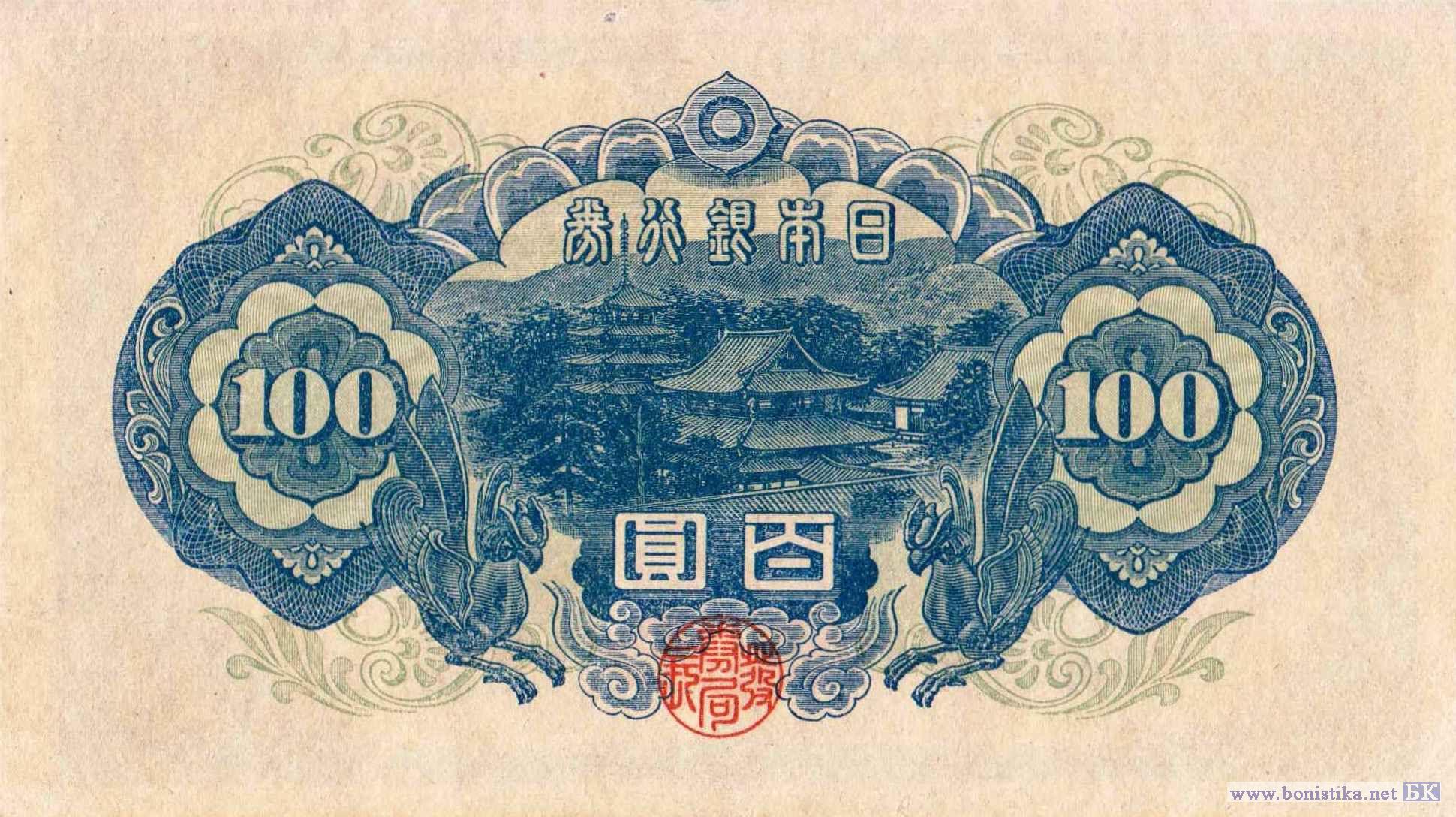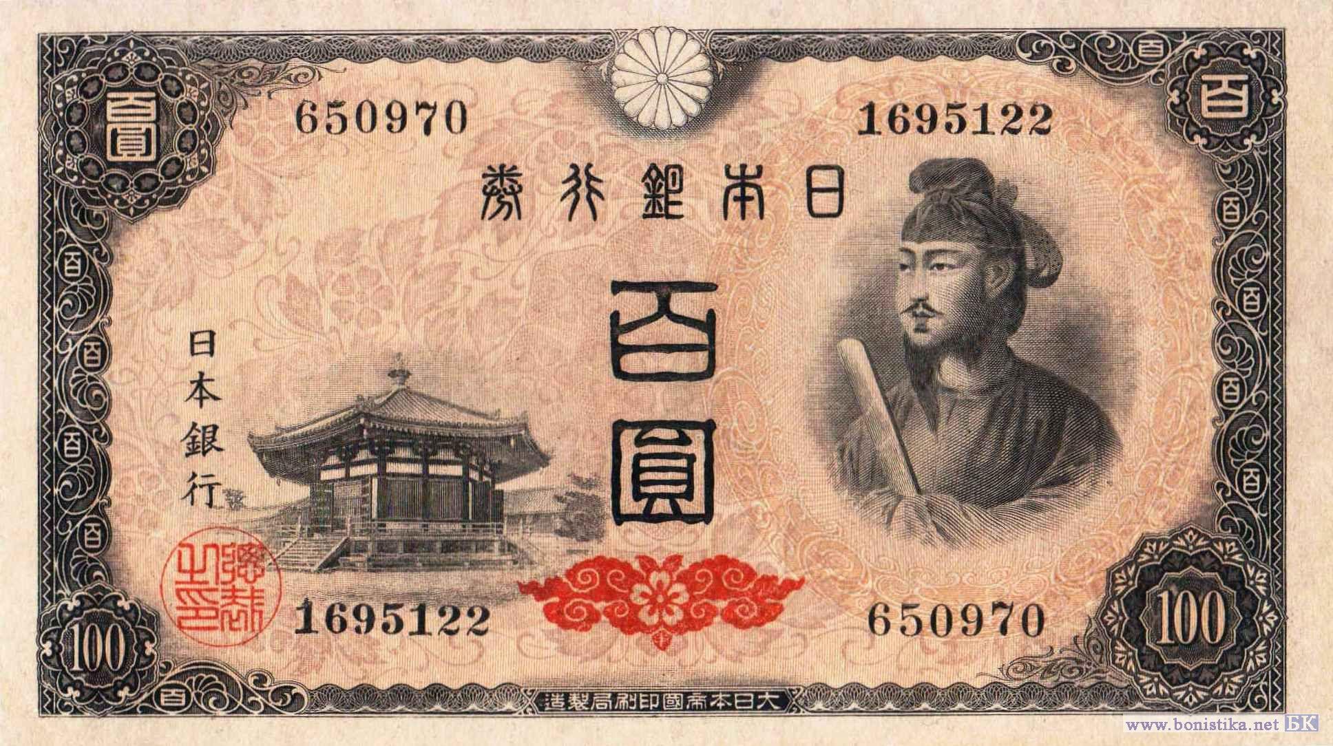 Храм Юмедоно (храм грёз), символ кику-но гомон (японская императорская печать в виде 16-лепестковой хризантемы), принц Сётоку Тайси. Логотип Банка Японии, горы, деревья, храм Хориюдзи, скульптуры мифологических птиц фениксов.