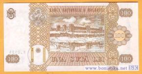 Реверс: Внутри рамы графическое изображение Крепости Тигина и надпись "CETATEA TIGHINA", номинальная стоимость в цифрах и буквах, два вертикальных декоративных элемента, герб Штефана чел Маре, стилизованное изображение колонны Трояна, Колонны Бесконечности и между ними полумесяц, название эмиссионного банка "BANCA NAŢIONALĂ A MOLDOVEI", художественно оформленная аббревиатура "BNM".