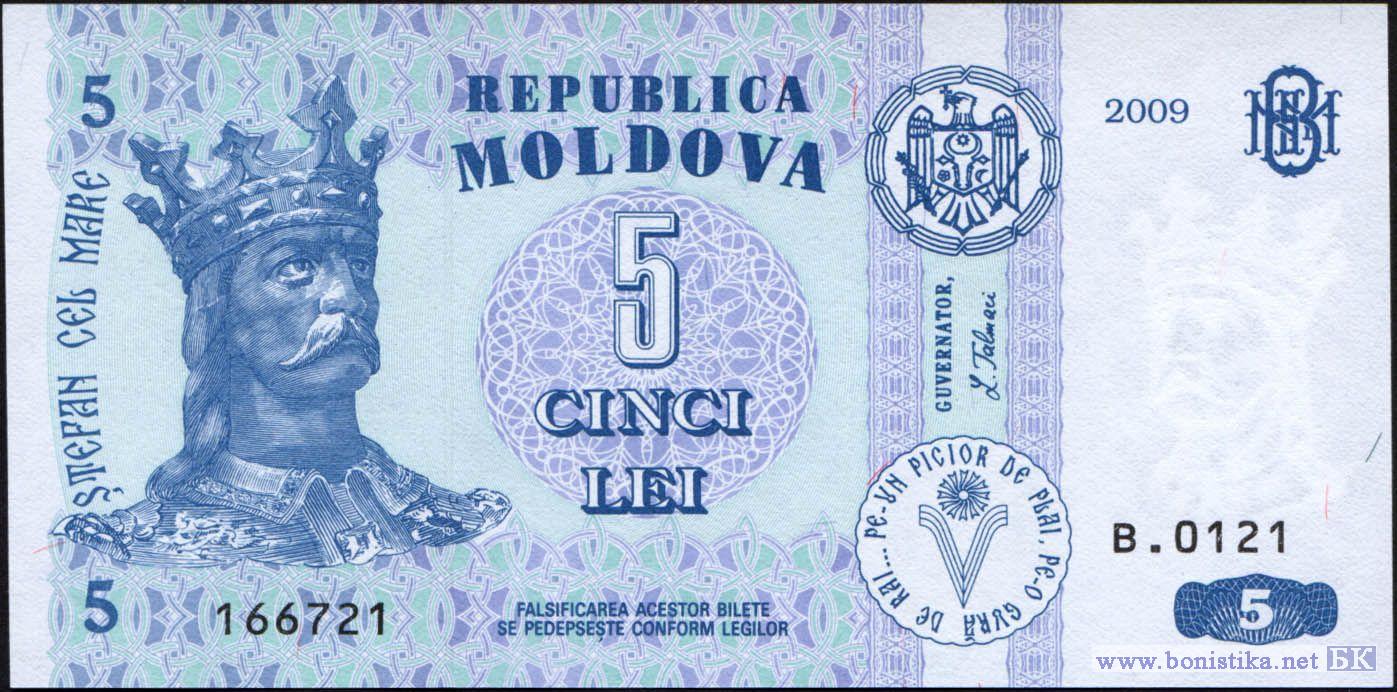 Аверс: Государственный герб Республики Молдова, надпись "REPUBLICA MOLDOVA", портрет Штефана чел Маре, многоцветный национальный орнамент, два вертикальных декоративных элемента, центральный гильош, номинальная стоимость в цифрах и буквах, художественно оформленная аббревиатура "BNM", факсимиле " GUVERNATOR, L. Talmaci", надпись по кругу "PE-UN PICIOR DE PLAI, PE-O GURA DE RAI...", стилизованное изображение литеры "V", год выпуска, номер и серия банкноты, надпись "FALSIFICAREA ACESTOR BILETE SE PEDEPSESTE CONFORM LEGILOR".