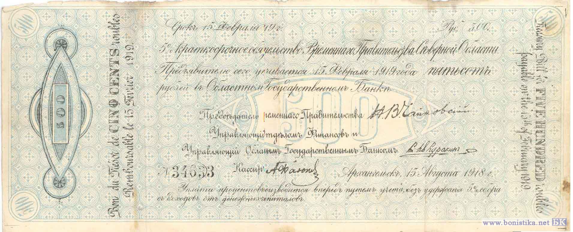 Правительство Северной Области / 5% Обязательства Временного Правительства Северной области