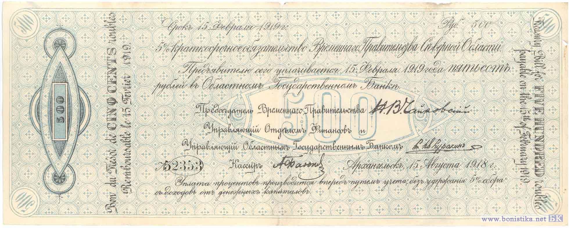 500 рублей ('Предъявителю' сдвинуто под 'краткосрочное'), 1918
