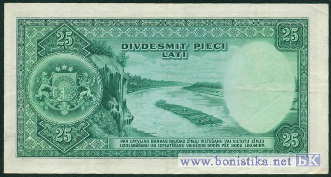 Подписи: председатель банковского совета - А.Кливе, генеральный директор - К.Ванагс Водяной знак: портрет К.Ульманиса (1877-1942) - 4-го президента Латвии.