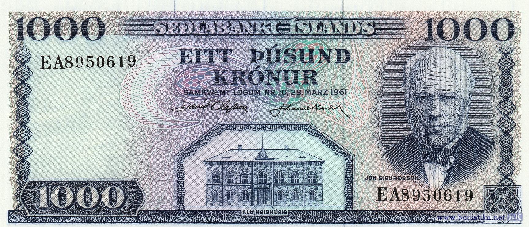1000 Kronur (тип 1f), 1961