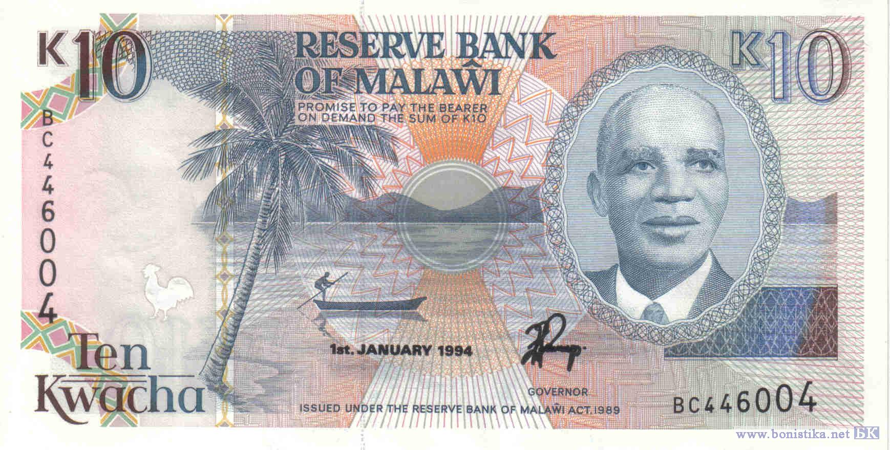 Подпись: F.Z. Pelekamoyo (глава Центробанка 1992 - 1995). Дата: 1.01.1994.