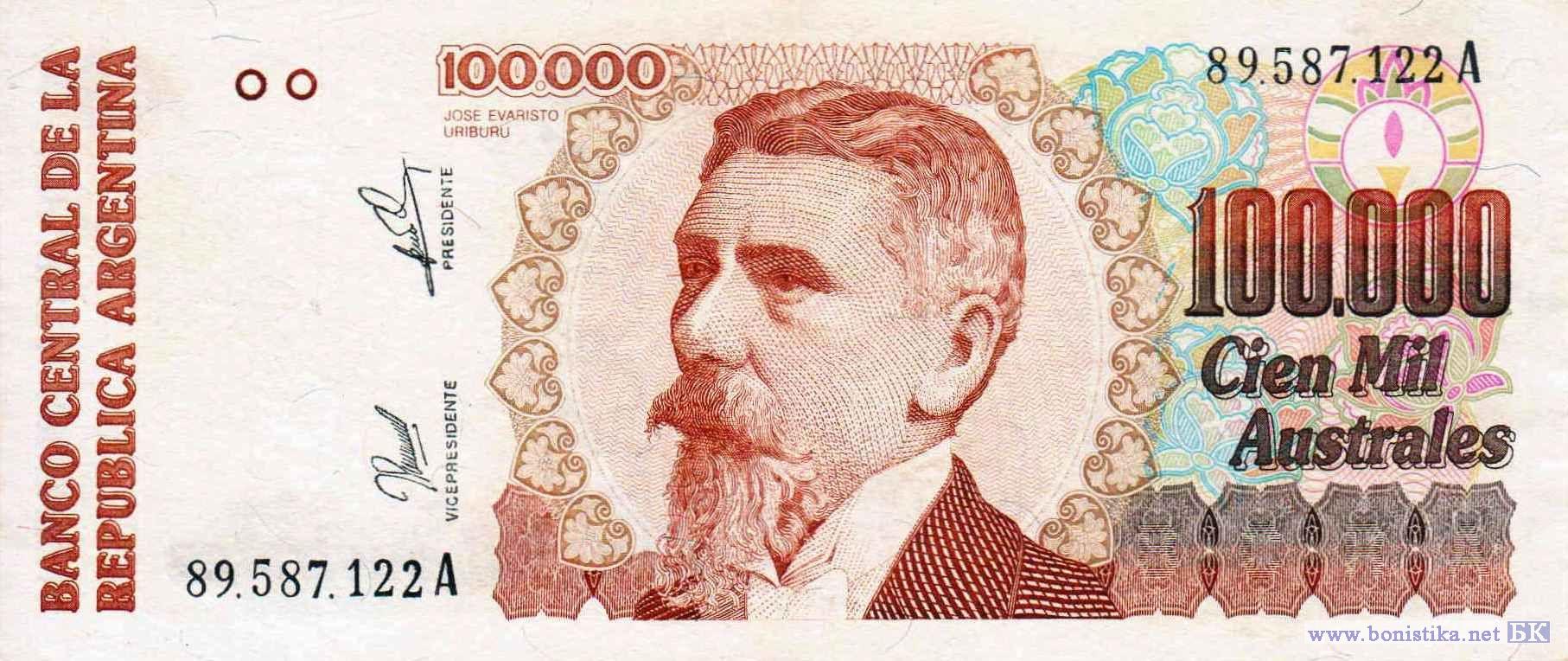 100000 Australes (тип 1), 1990