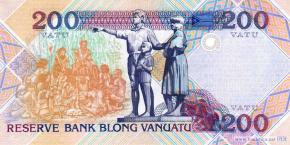 Герб Вануату. Вождь в окружении соплеменников, статуя перед зданием парламента в городе Порт-Вила на острове Эфате, флаг Вануату.