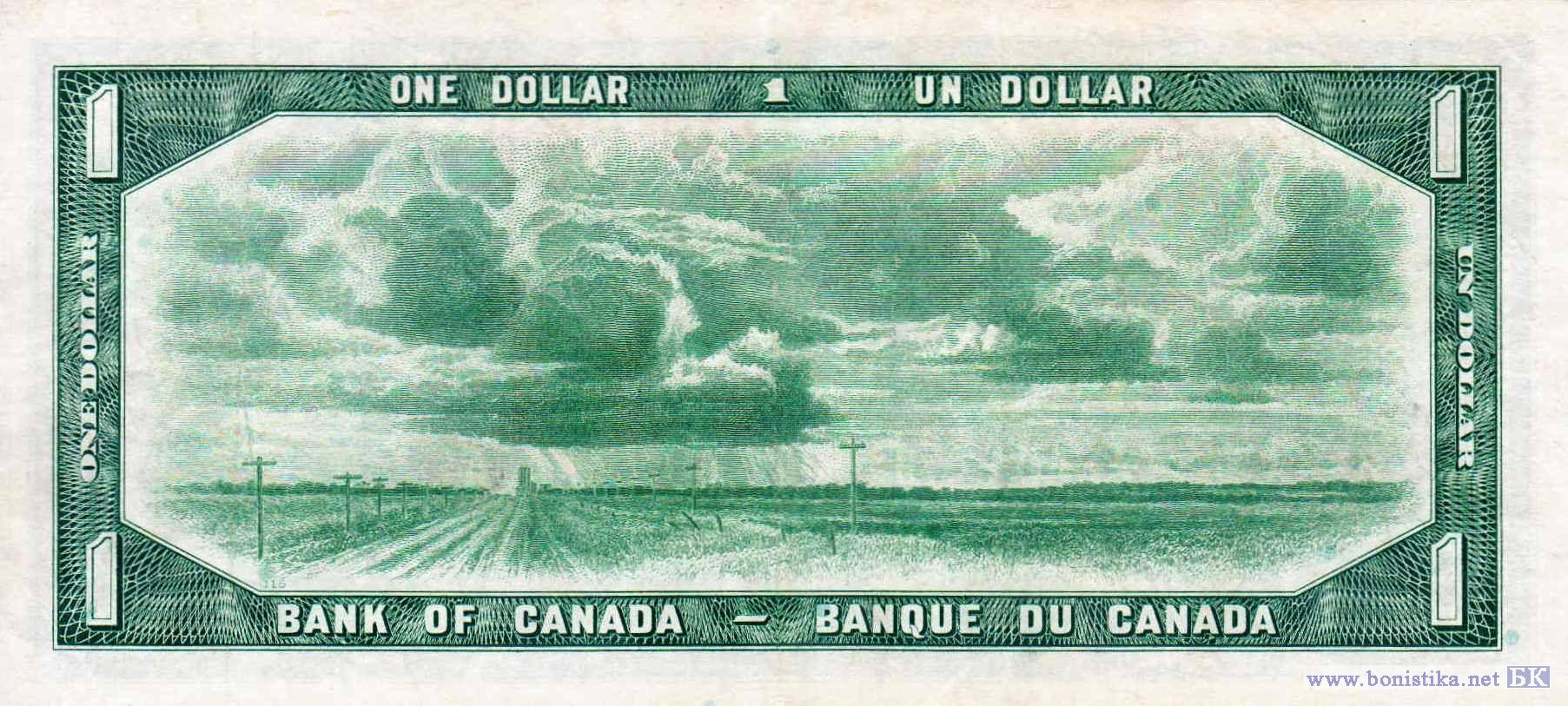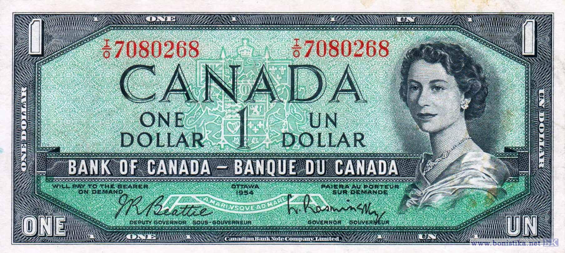 Тип b. Вариант подписей: John Robert Beattie - Louis Rasminsky. Принтер: Canadian Bank Note Company, Limited. Банкнота выпущена в обращение в 1961 году.
