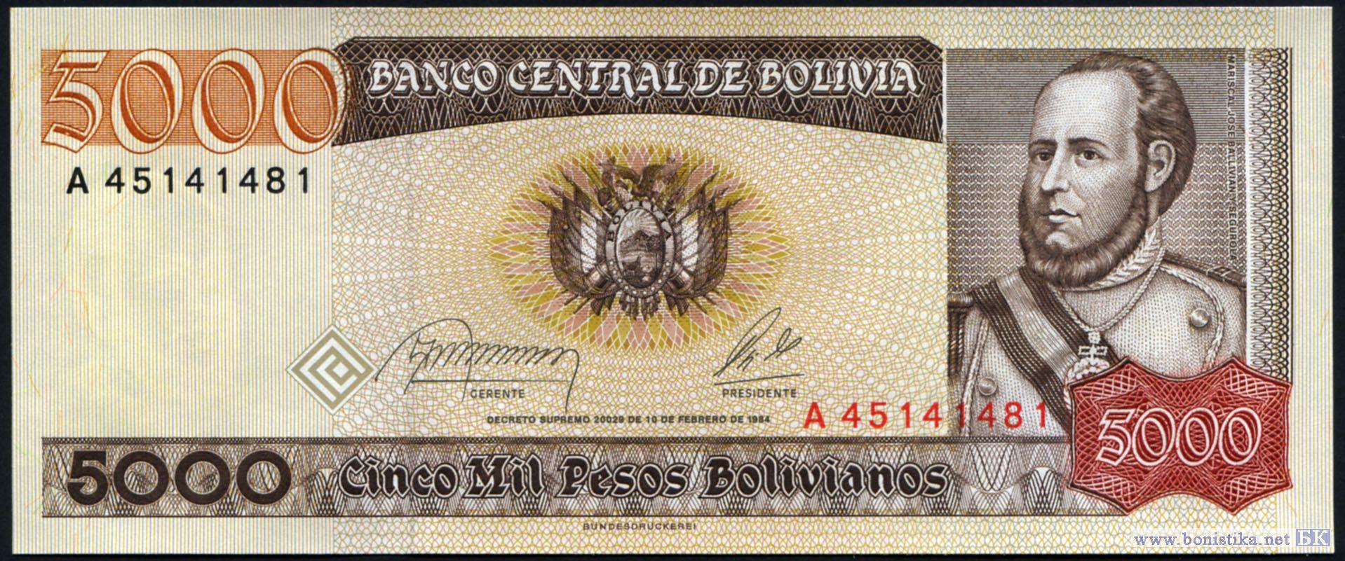 5000 Pesos Bolivianos, 1984