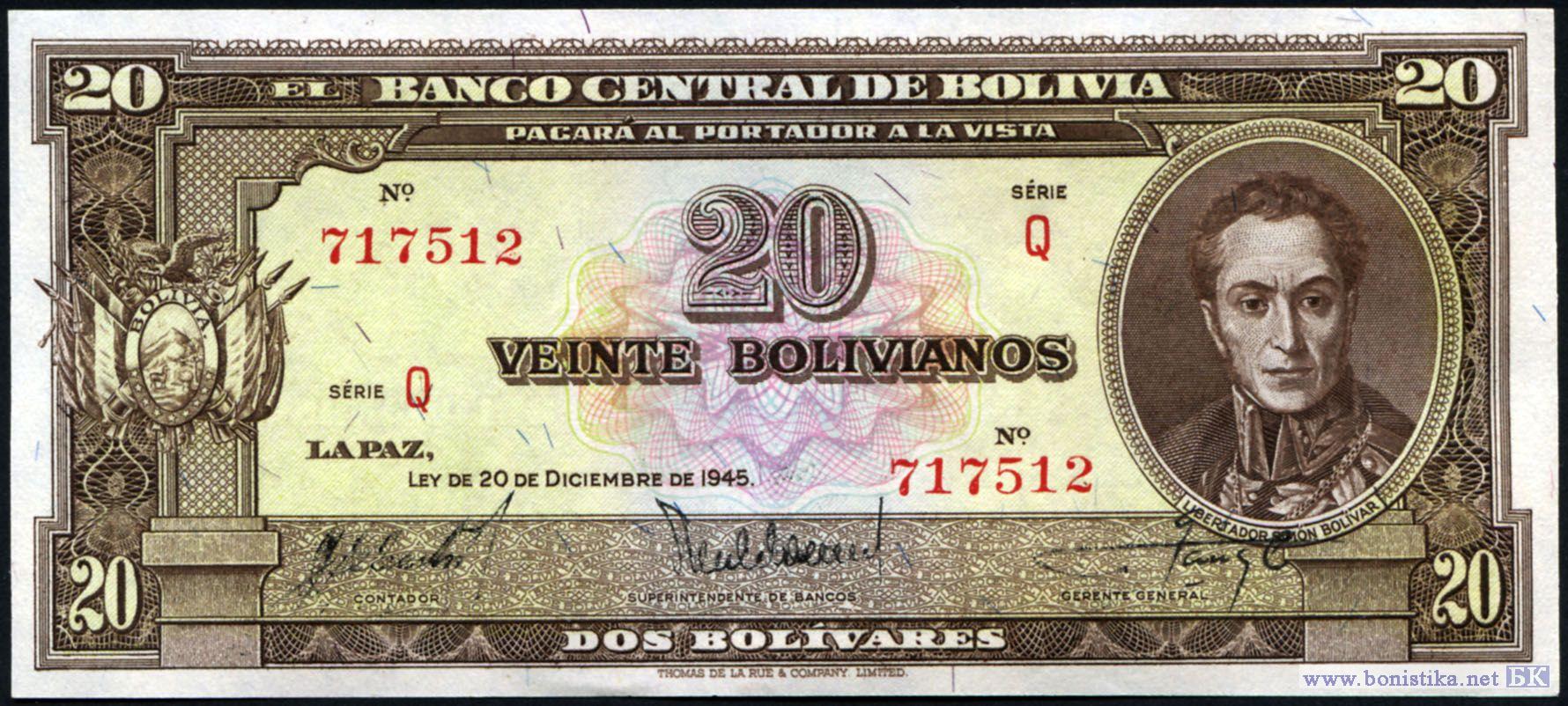 20 Bolivianos (тип a), 1945