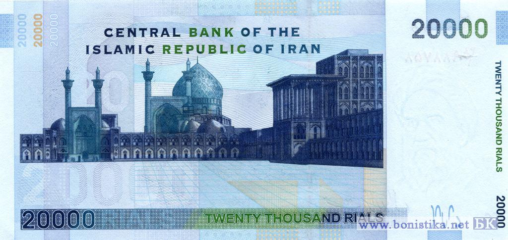 Вариант подписей №30: Ebrahim Sheibani (глава Центробанка 3.05.2003-5.09.2007) и Tahmasb Mazaheri (министр финансов 12.08.2001-2.11.2004). Большой портрет. Лидер исламской революции, аятолла Рухолла Мусави Хомейни. Мечеть Имама и бывший шахский дворец Али-Гапу на площади Майдане-Шах (ныне Майдане-Имам) в г. Исфахан.