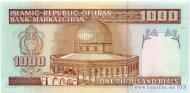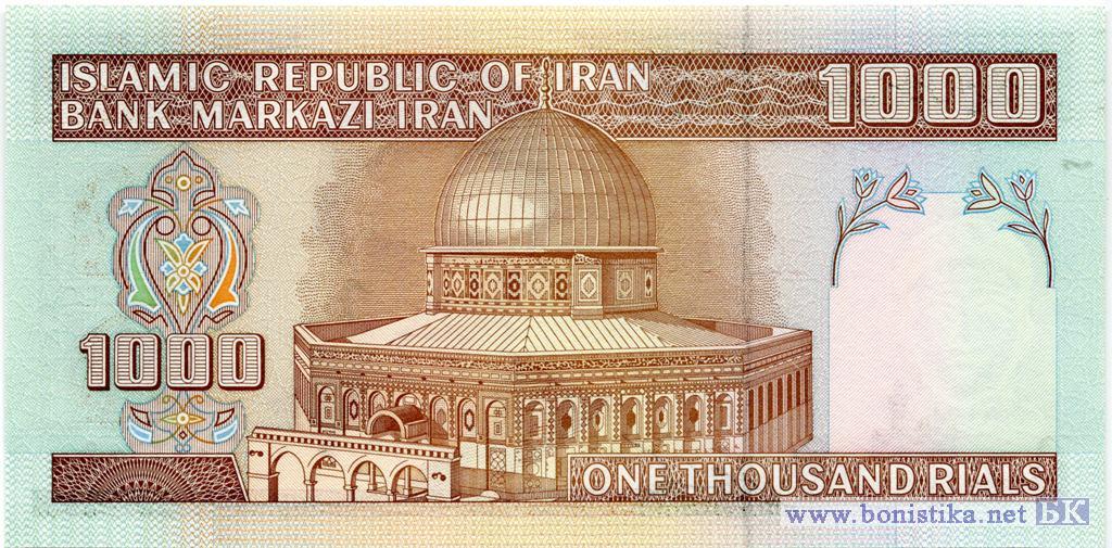 Вариант подписей №25: Mohammad Hosein Adeli (глава Центробанка 1989-1994) и Mohsen Nourbakhsh (министр финансов 1989-1993). Водяной знак - шахид Мохаммед Хосейн Фахмиде. Мечеть имама Резы в г. Машад, лидер исламской революции, аятолла Рухолла Мусави Хомейни. Мечеть Куббат Ас-Сахра (Купол Скалы) на Храмовой горе в восточной части г. Иерусалим.