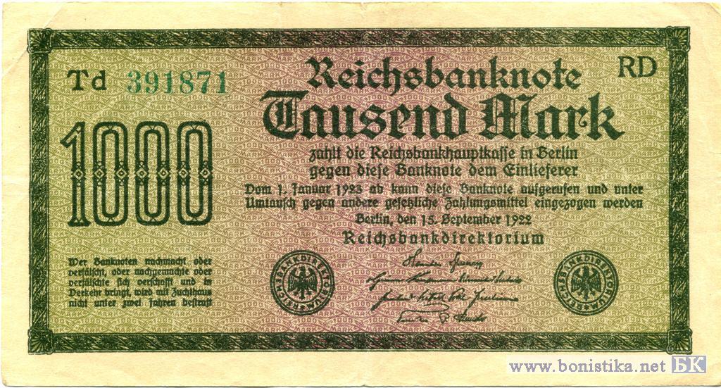 1000 Mark (тип 1m), 1922