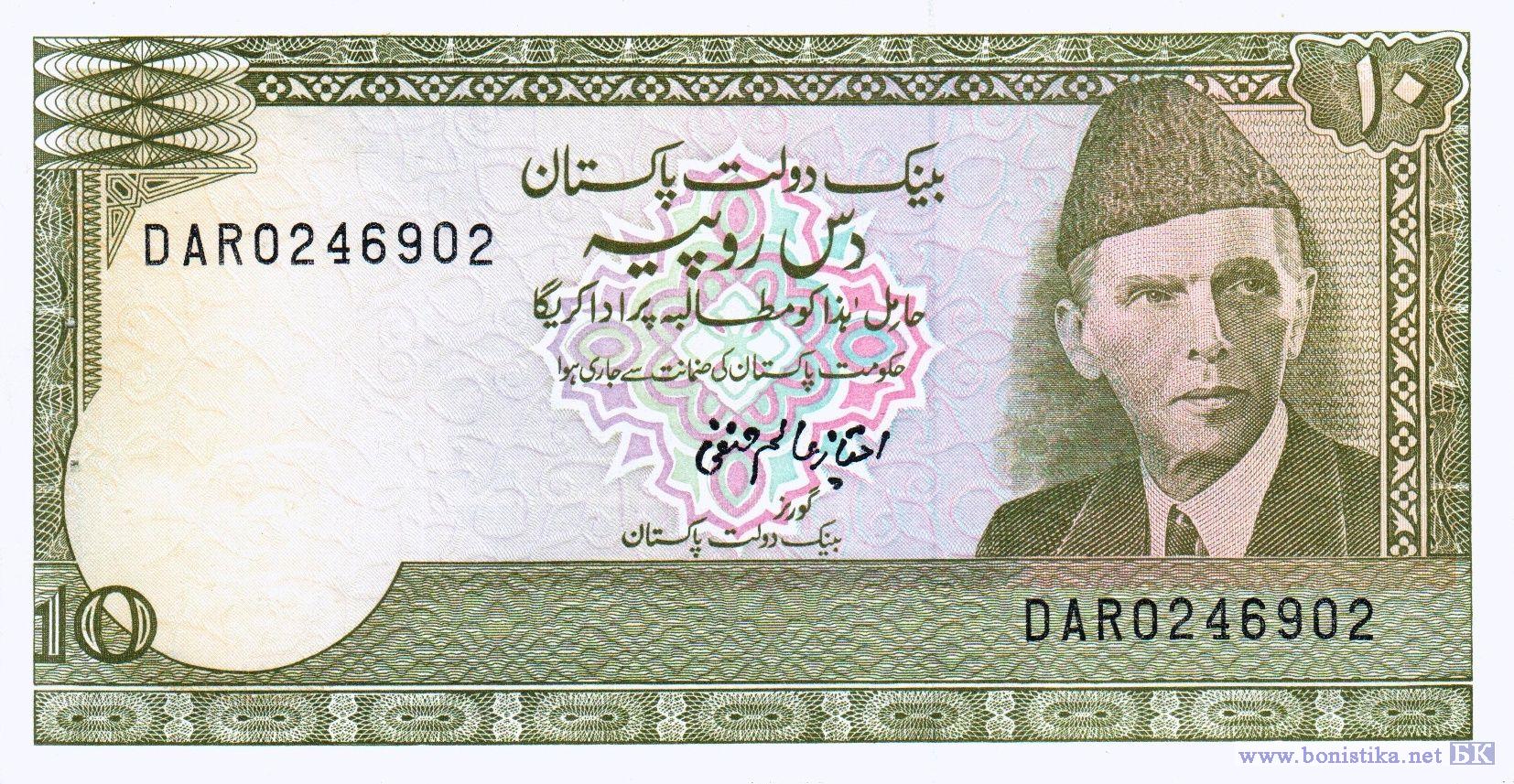 Тип а3.2. Вариант подписи № 10: Imtiaz A. Hanafi. Серийные номера: три буквы и семь цифр. Надпись на урду вверху на оборотной стороне тип b.
