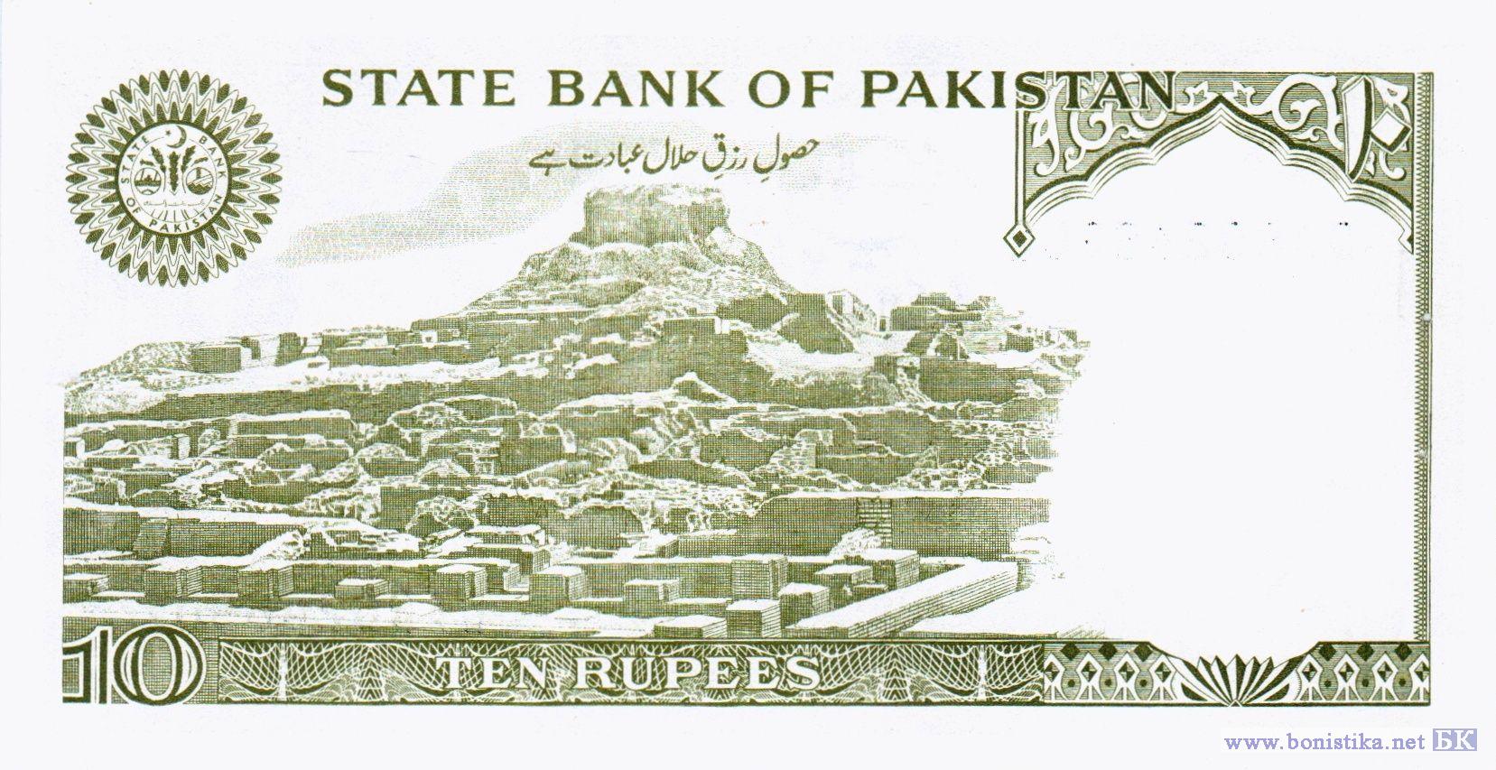 Лидер партии Мусульманская лига, первый генерал-губернатор Мухаммад Али Джинна. Эмблема Государственного банка, руины в древнем городе Мохенджо-Даро – центре хараппской цивилизации близ современного города Ларкана в провинции Синд, город включен в список объектов Всемирного наследия ЮНЕСКО.