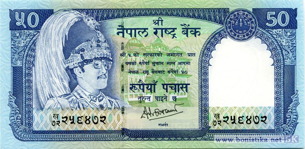 Вариант подписи: Satyendra Pyara Shrestha. Принтер: (De La Rue & Co. Ltd, UK). Король Бирендра Бир Бикрам Шах Дев, Джанаки Мандир - индуистский храм богини Ситы в г. Джанакпур (Джанакпурдхам). Тар (Hemitragus jemlahicus) – млекопитающие из семейства полорогих.
