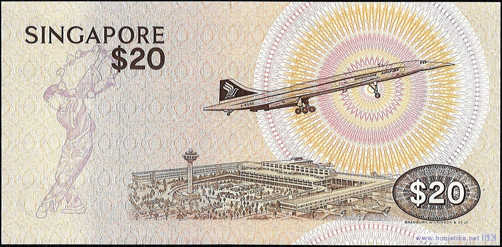 Серийные номера дробные 2-го типа: одна буква/две цифры и шесть цифр. Жёлтобрюхая нектарница (Nectarinia jugularis)-птица семейства нектарниц из отряда воробьинообразных, вид г. Сингапур. Здания международного аэропорта Чанги, сверхзвуковой пассажирский самолёт Конкорд.